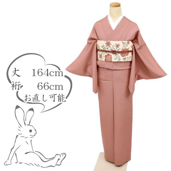 > 【江戸小紋】 単衣 長尺 『角通し』 着物 赤 正絹 無紋 作家落款有 5KM14