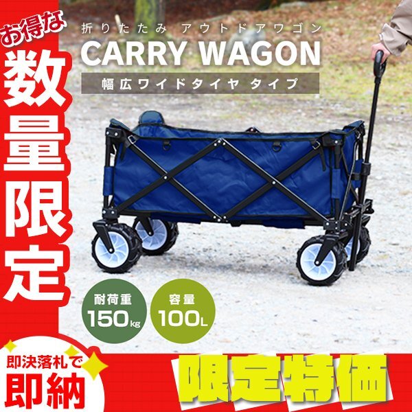- 【限定セール】ネイビー アウトドアワゴン 耐荷重150kg 容量100Lキャリー カート ワゴン 折り畳み マルチカート 軽量 レジャー mermont
