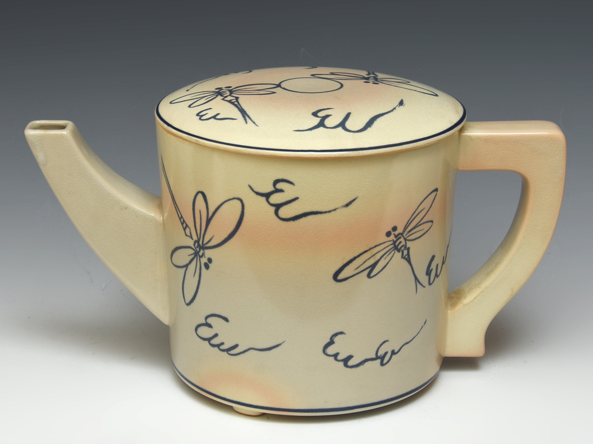 - 安南写 蜻蛉文 水次 幅:28cm 水注 稽古用にも 茶道具 陶磁器 u1062t