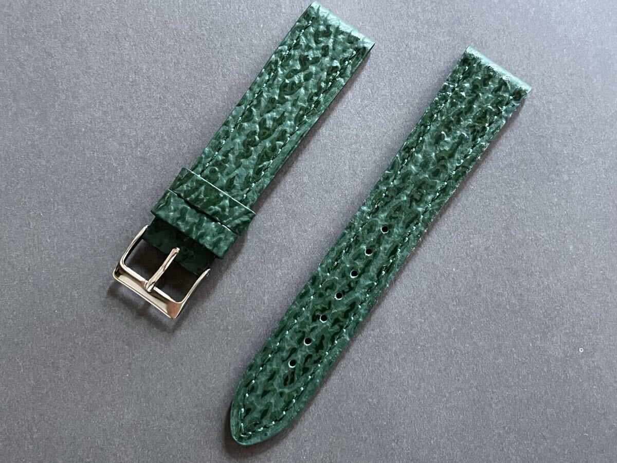 - 20mm レザー時計ベルト ダークグリーン シャーク型押し 国内メーカーストック品 イタリアンレザー 送料無料!Q20-4