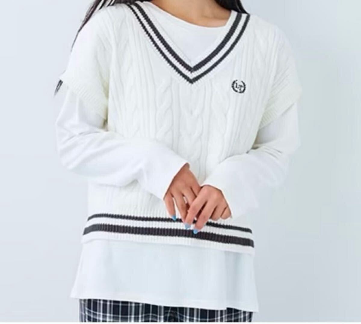 > ラブトキシック 2枚セット 130 ニットベスト 長袖無地ロンT トップス 制服 白 ホワイト Vネック