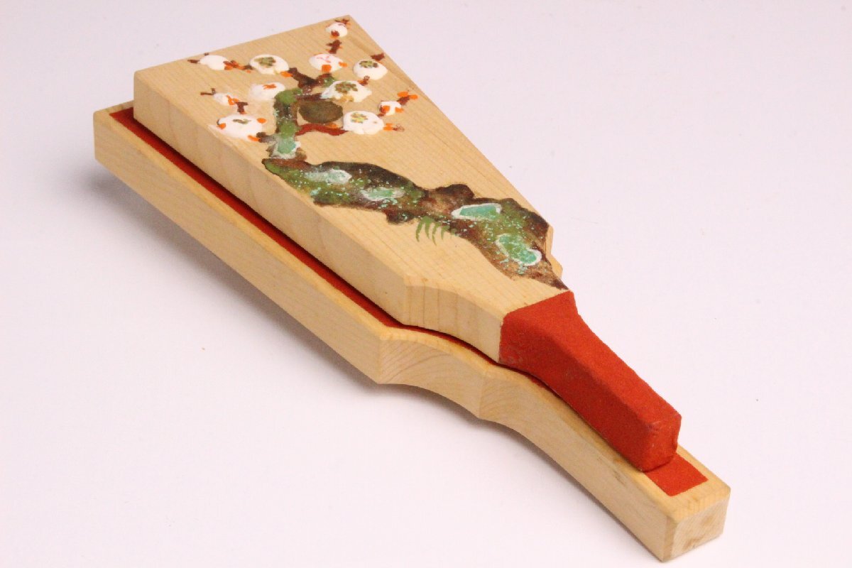 正 作 古梅花絵 羽子板香合「共箱・共布」