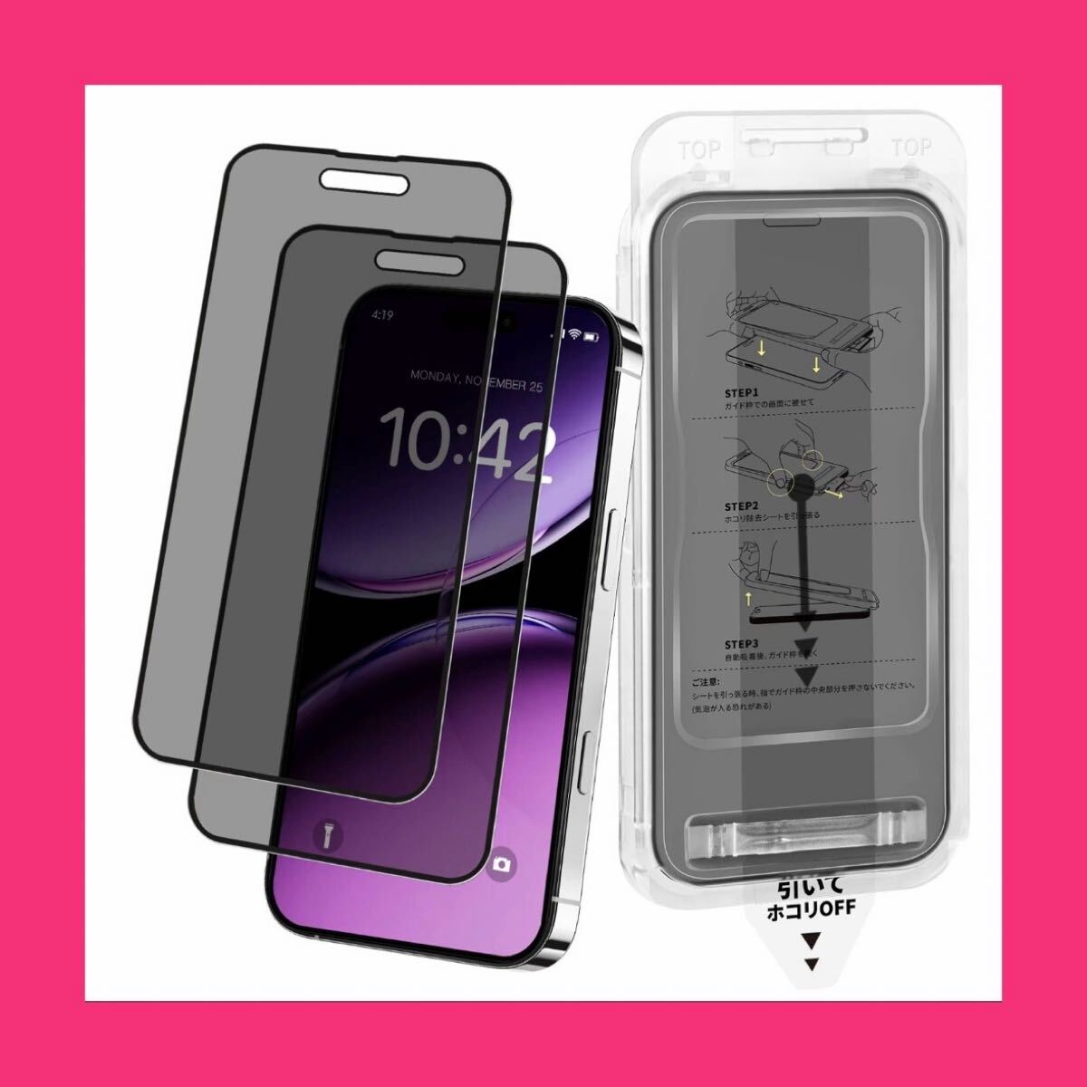 - 覗き見防止 iPhone 17 Pro Max ガラスフィルム【米軍規航空素材・ガイド枠付き】 保護フィルム 高感度 99%高透過率 指紋防止 2枚セット