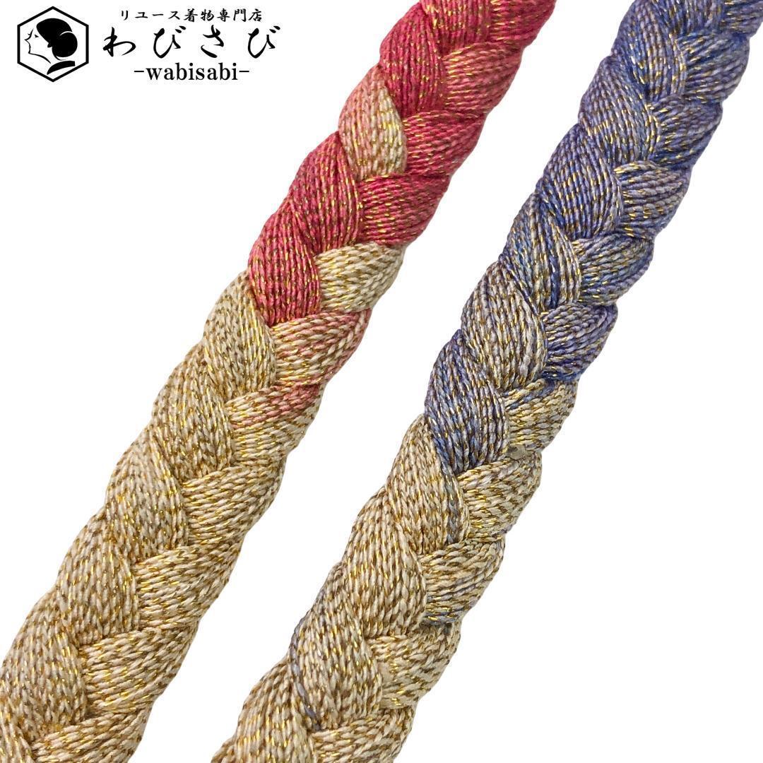 - 和装小物 帯締め 正絹 平組紐 組紐 牙黄色 C-6441 着物 きもの kimono 和服 和装 中古 リサイクル着物 【送料無料】