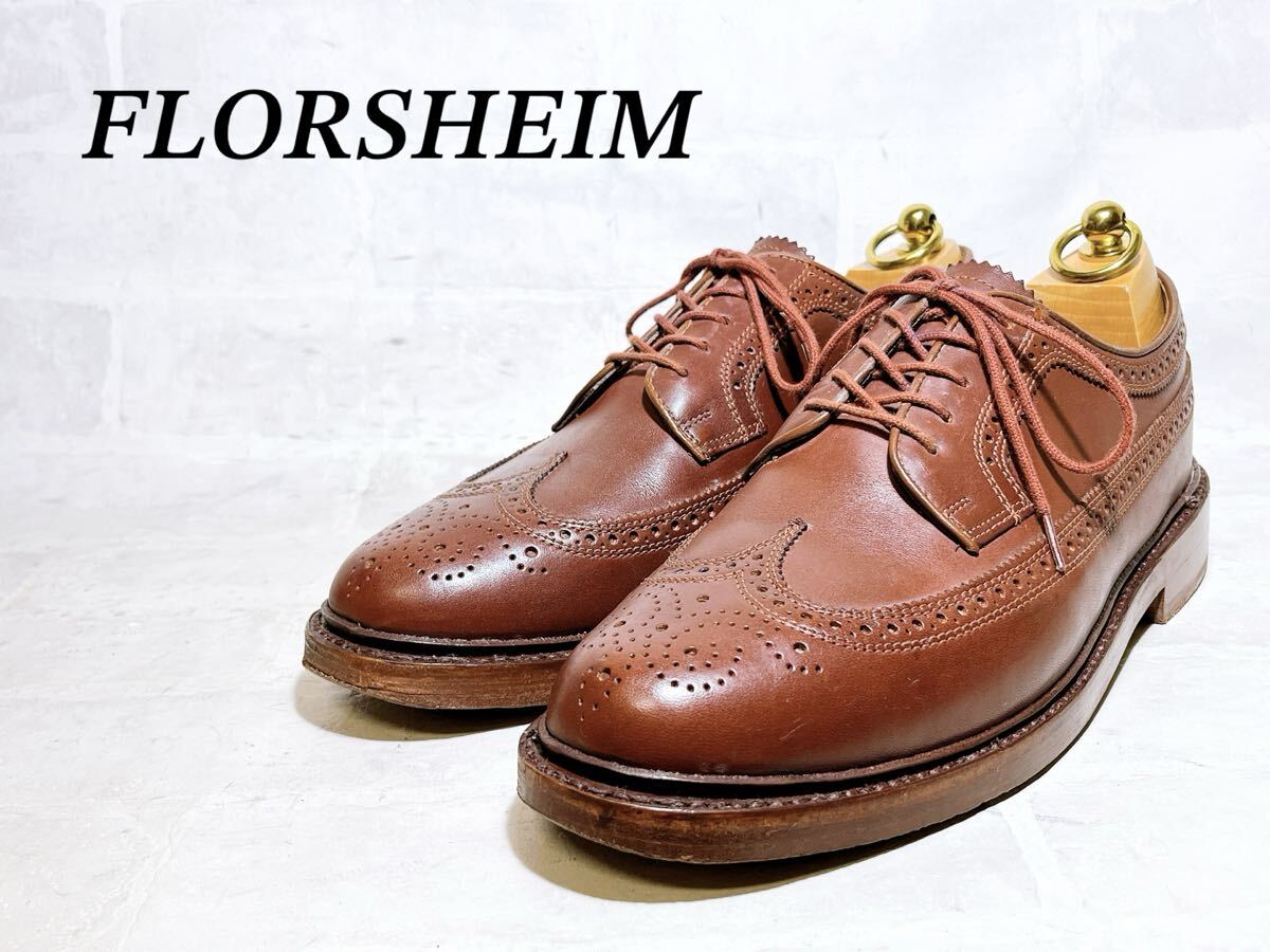 > 【極美品】FLORSHEIM フローシャイム 高級 ウィングチップ ビジネスシューズ 茶 ブラウン US8D(約26cm)メンズ 紳士靴