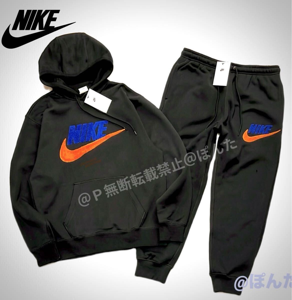 - 新品 ナイキ スウェット 上下セット ワッフルロゴ パーカー ジョガーパンツ [ Lサイズ ]黒 ブラック オレンジロゴ