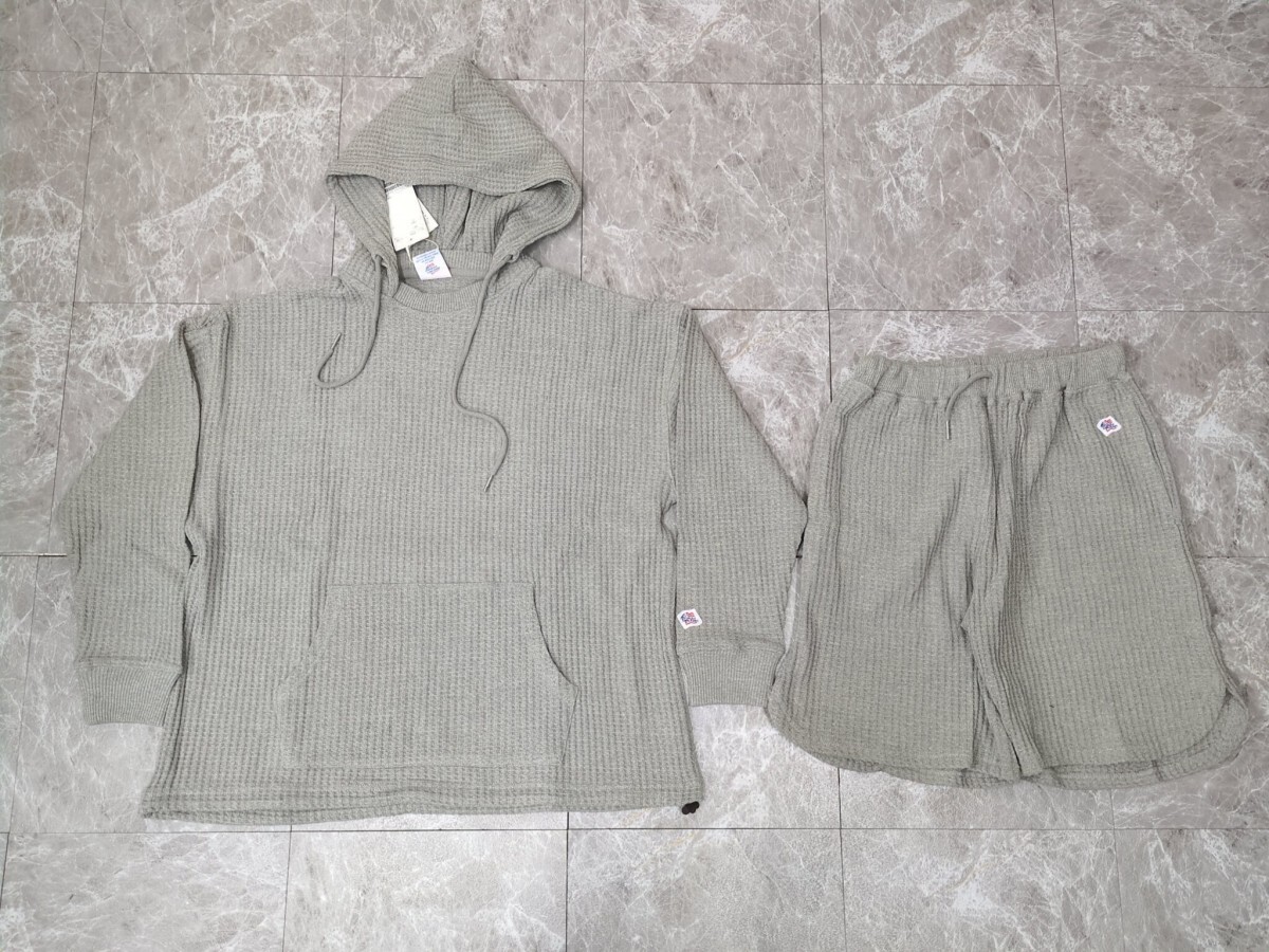 > 未使用 JEMORGAN JE/M B サーマル生地 上下 セットアップ 後付けフード プルオーバー パーカー フーディー ハーフ パンツ Free(M-L)102