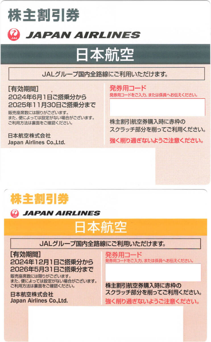 - 即日発送☆即決有り◆送料無料☆ゆうパケットmini発送◆日本航空(JAL)☆株主優待☆片道普通運賃の半額×2枚【発券コードの通知も可】