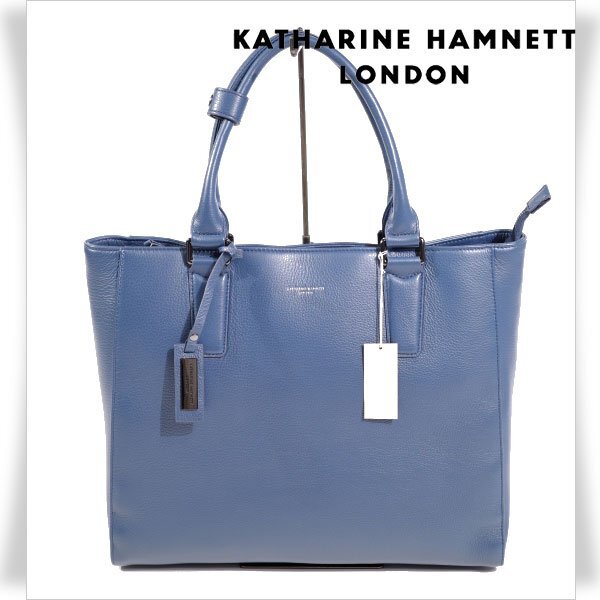 - 新品1円~★定価2.6万 KATHARINE HAMNETT LONDON キャサリン ハムネット ロンドン 牛革 本革レザー トートバッグ ブルー ビジネス◆4289◆