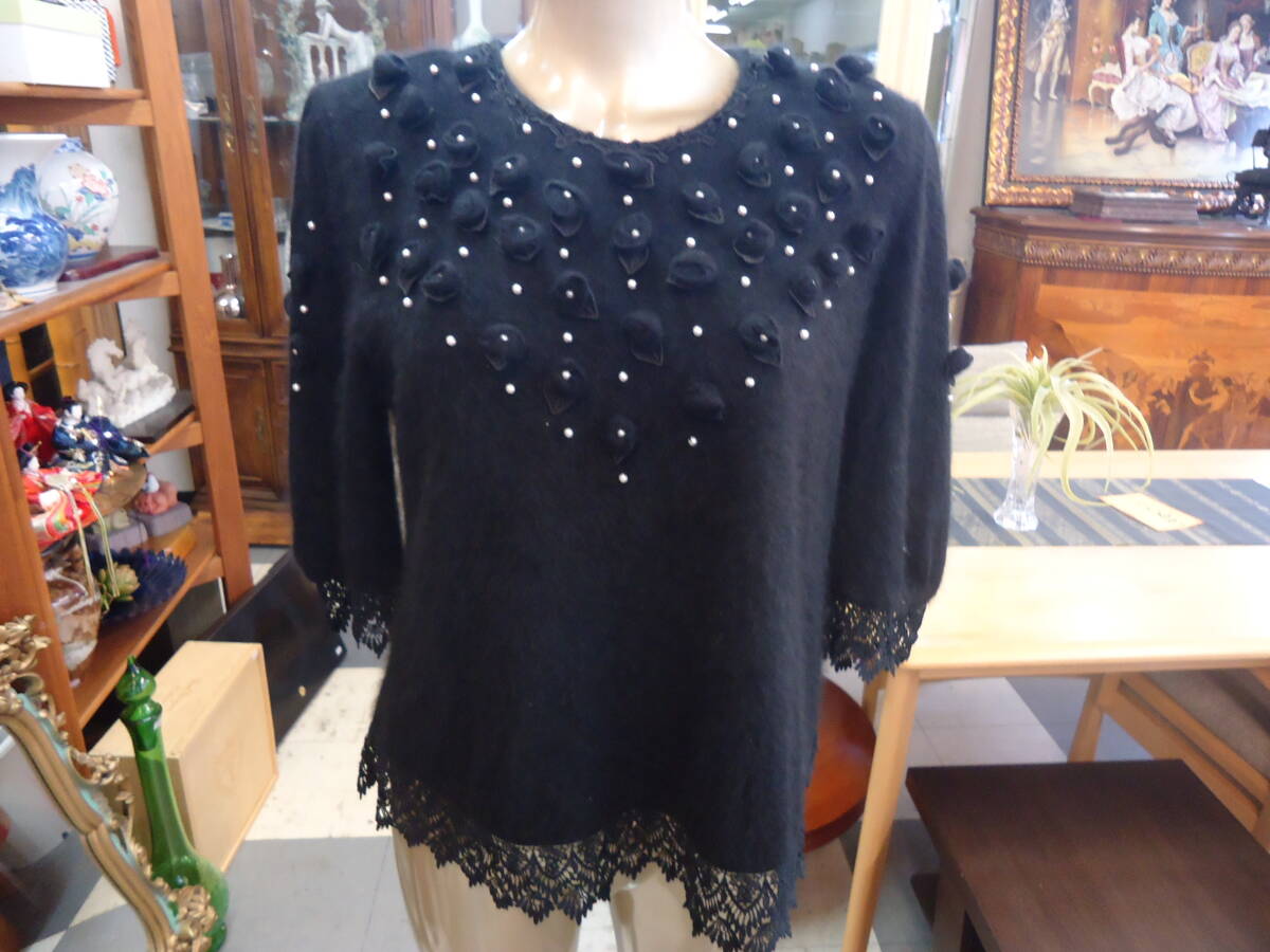 - ●○(株) びーどろ 日本製 アンゴラ 花モチーフニット A116○●