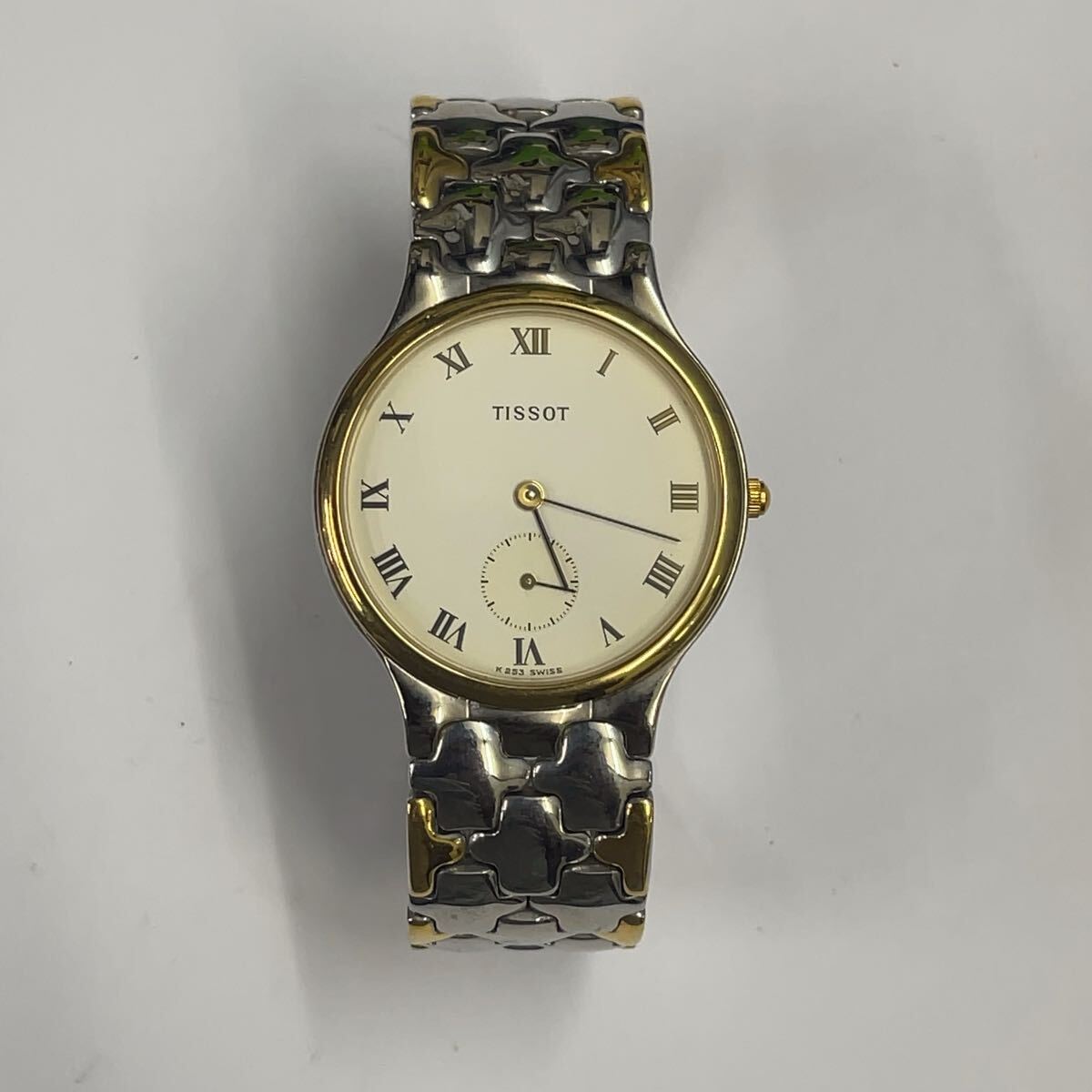 > 美品 TISSOT ティソ メンズ腕時計 スモセコ アイボリー 文字盤 コンビ ゴールド シルバー アナログ K253 稼働品