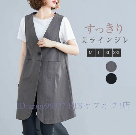 - ★新品通勤ベスト レディース ジレノースリーブ 綿麻 前開きサマーベスト 重ね着大きいサイズ春夏秋 薄手 おしゃれ体型カバー M~2XLグレー