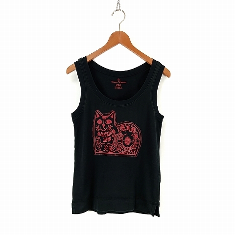 - ヴィヴィアンウエストウッドレッドレーベル Vivienne Westwood RED LABEL CAPTAIN JASON 猫 プリント タンクトップ 2 黒 ブラック ☆AA★