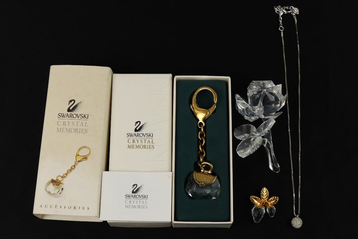 > スワロフスキー アクセサリー まとめて オブジェ ネックレス ブローチ 等 まとめて4点 Swarovski 薔薇 ストロベリー 等【彩irodori】