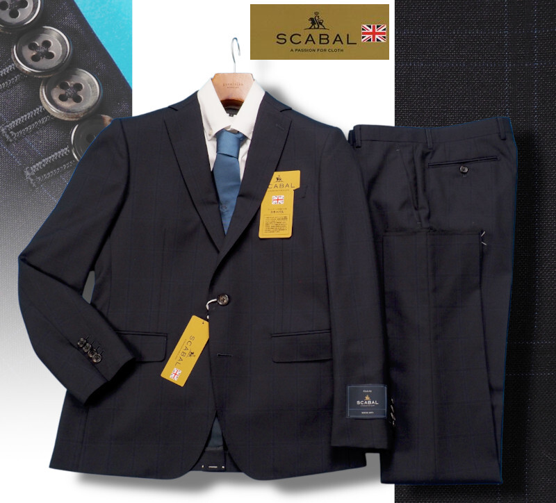 - 新品サンプル20.6万円 大手百貨店扱い 春夏 日本製『Scabal スキャバル 英国製生地』Super120Sウール チェック柄 スーツA6紺(B) 4502571