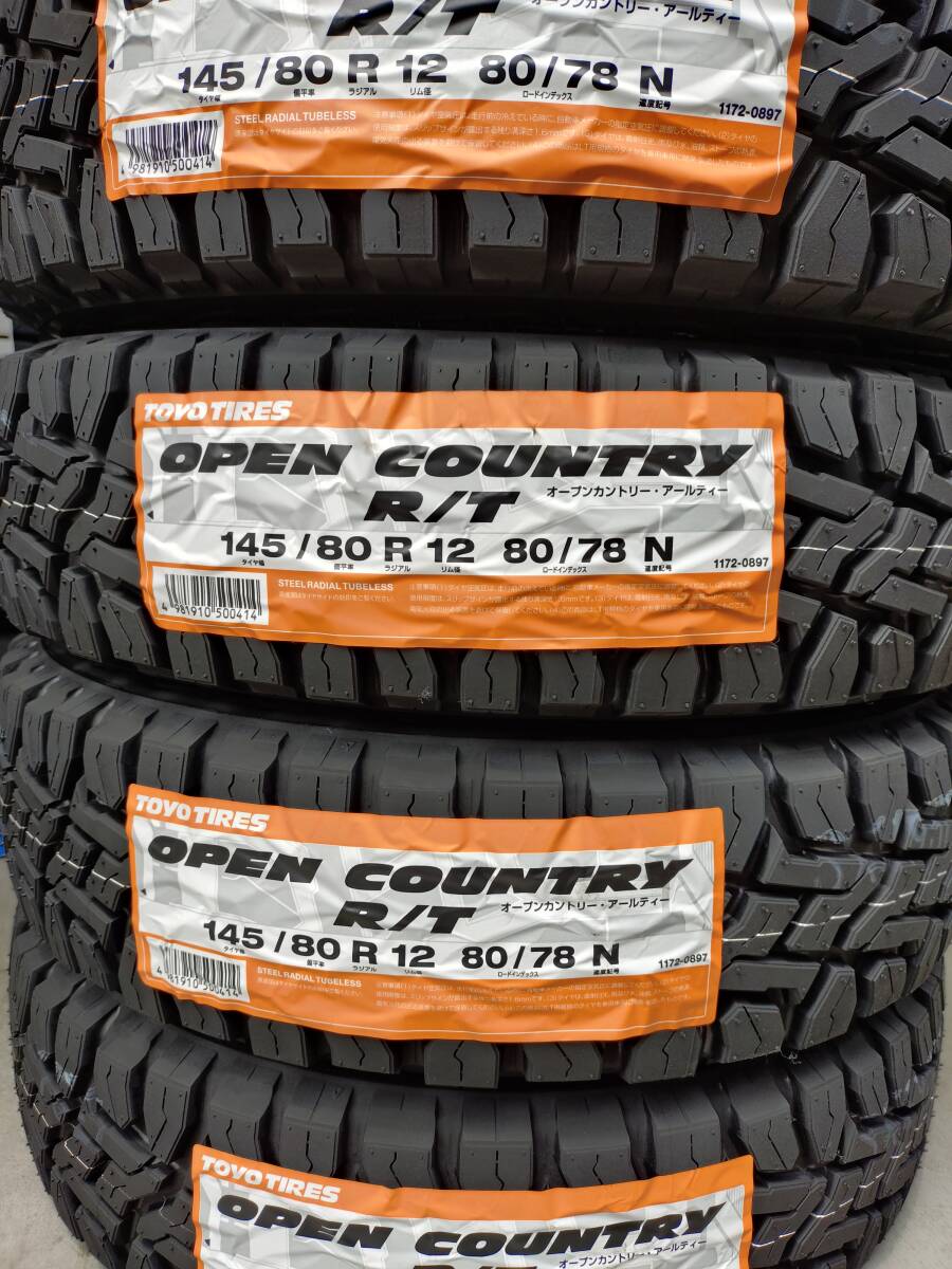 > 2025年製 総額/23,600円~ 送料込4本 145/80R12 80/78N LT 個人宅同額発送 オープンカントリー トーヨー 即日発送 インボイス対応 在庫あり