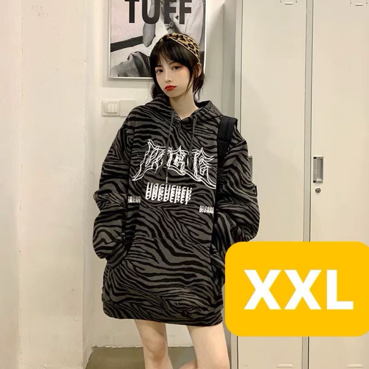 - パーカー ビッグシルエット トップス フード ゼブラ柄 長袖 オーバーサイズ プルオーバー アニマル柄 メンズ レディース #グレー #XXL