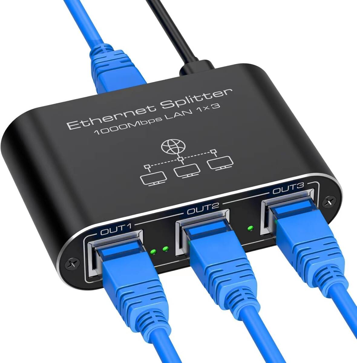 > 【3有線LAN 同時出力】LAN 1入力3出力 分配器 SP921 高速 1000Mbps 3有線LAN Splitter 3PC対応 3分 3分配 三股 RJ45 スプリッター