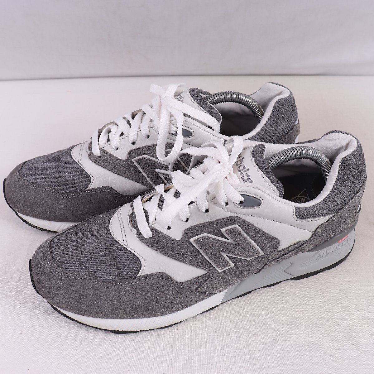 - 878 ニューバランス 27.5cm/new balance 灰 グレー ライトグレー ピンク 中古 古着 メンズ スニーカー yy6878