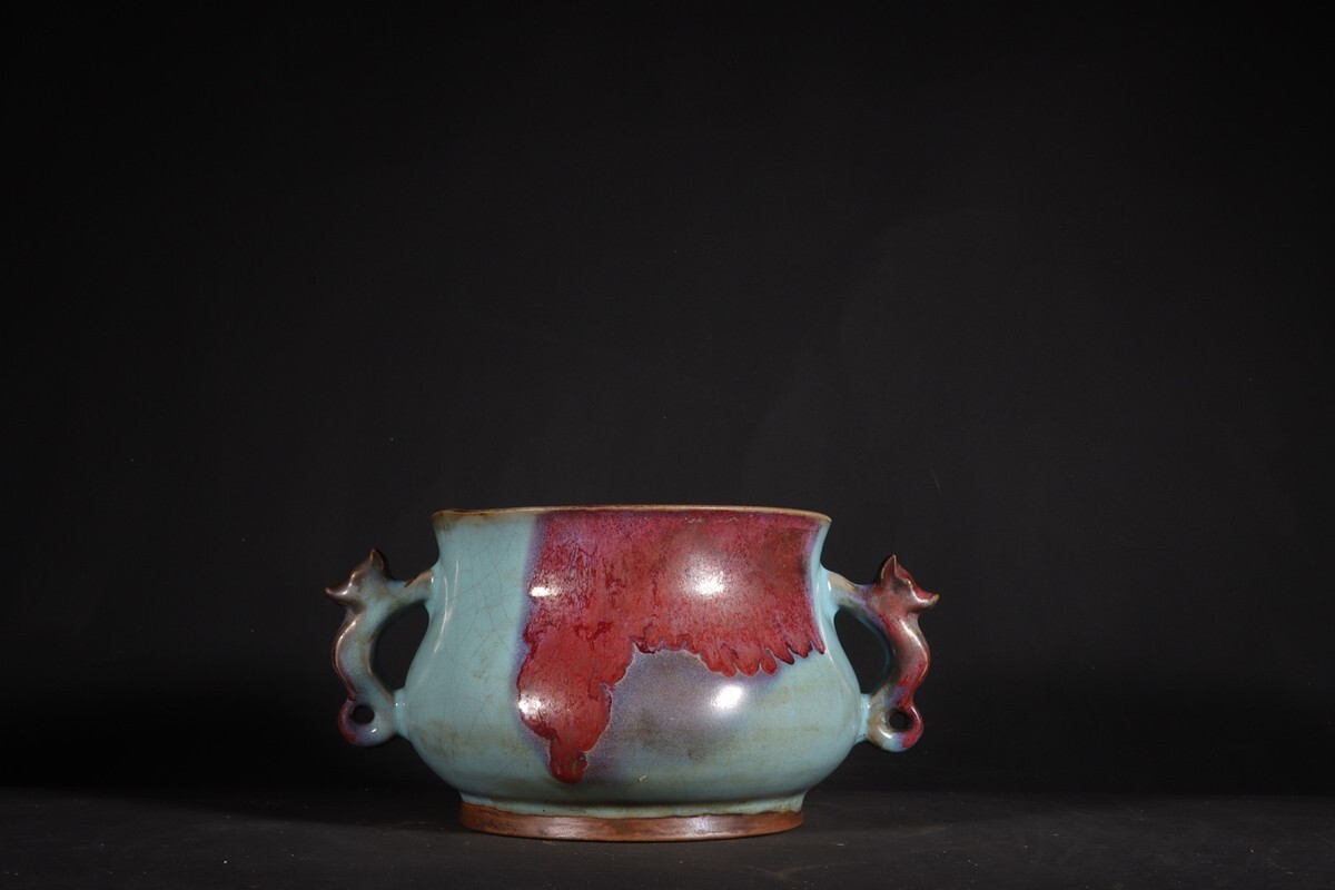 - 「宋 鈞窯 陶磁器 天藍釉紫斑 鼠耳墾式爐」染付 置物 擺件 古賞物 中国古美術 旧蔵出