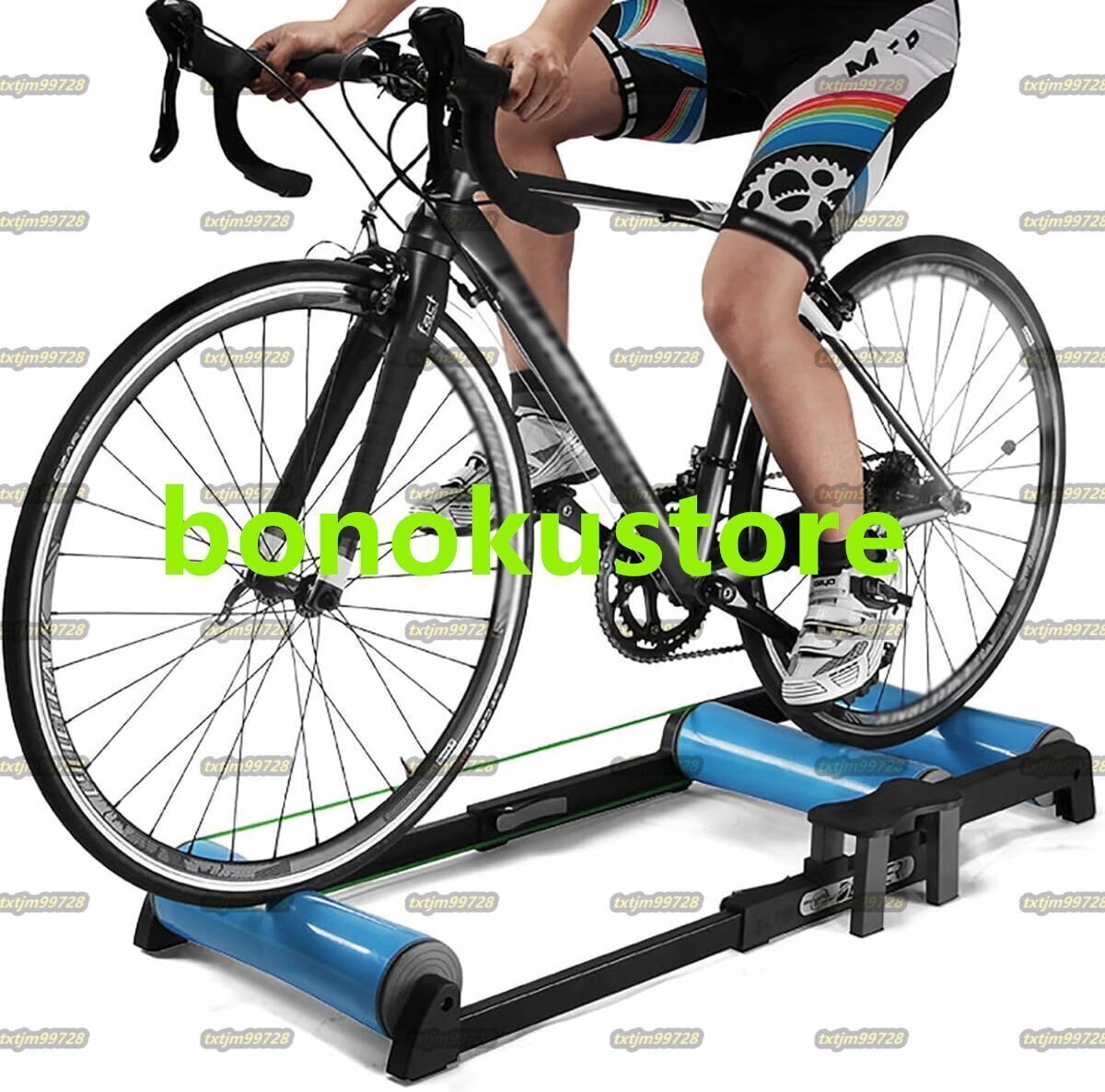 > バイクトレーナースタンド、ペダルデザイン付き折りたたみ自転車ローラー、調節可能な前輪ブラケット、滑り止めと耐摩耗性、24-29インチの