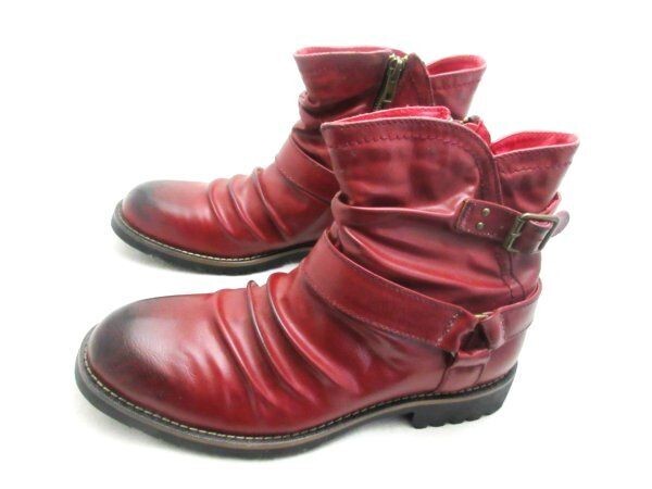 - [送料無料]Q0183新品Dedesフロントベルト/ドレープショートブーツ26.5㌢WINE♂