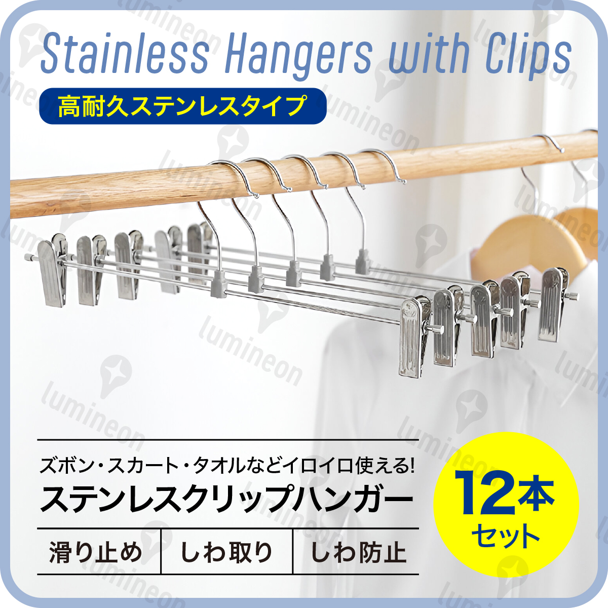 > ハンガー ステンレス ズボン スカート スラックス ズボン 用 パンツ ジーンズ ボトムス クリップ 付き 跡がつかない 挟むタイプ g107b 1