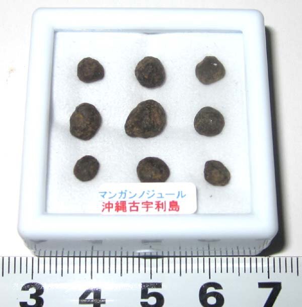 - 日本の鉱物ミニコレクション 沖縄県古宇利島のマンガンノジュール 9粒/一ケースno06
