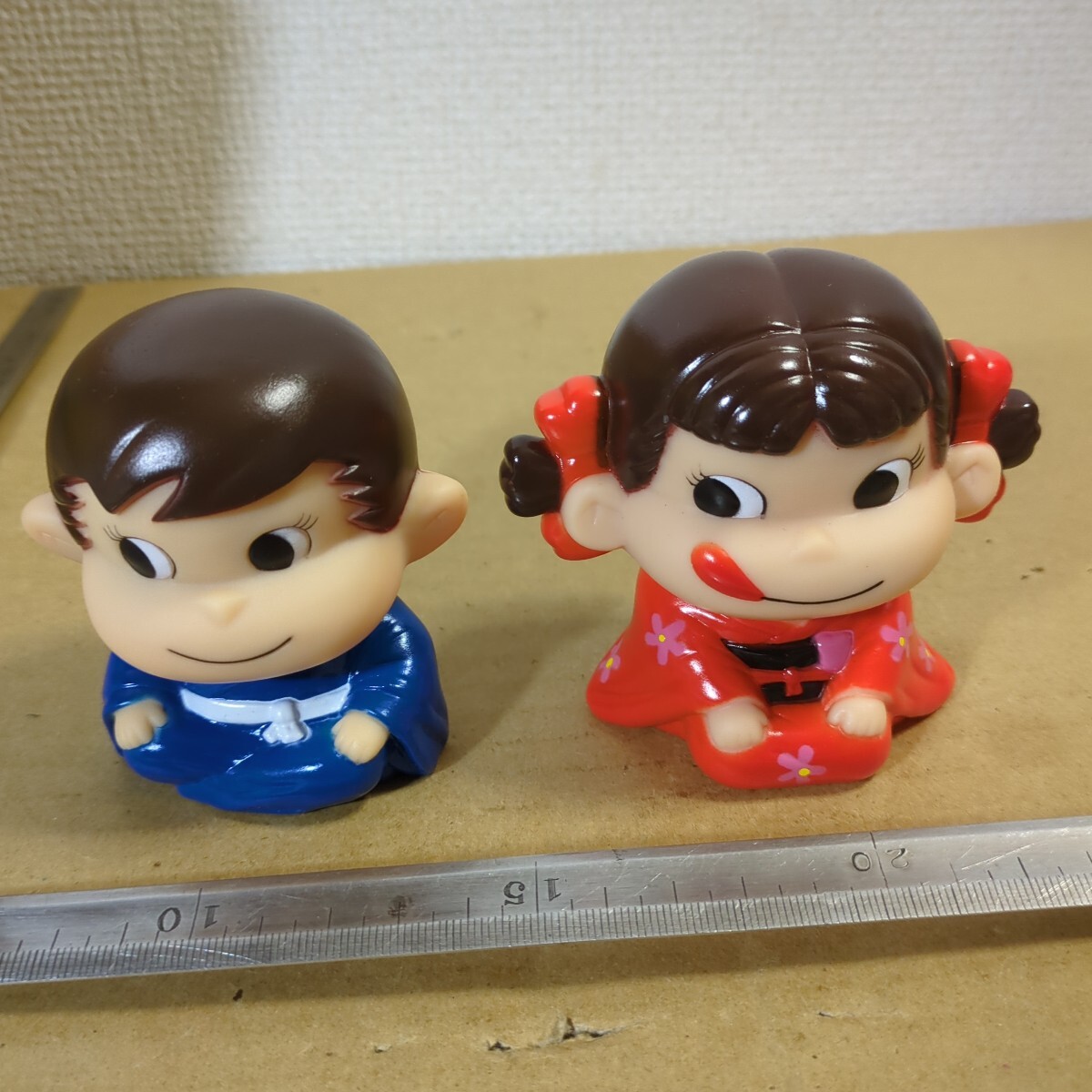 - 不二家 ペコちゃん ポコちゃん ソフビ貯金箱 高さ約8㎝ 2点セット 未チェック 詳細不明 ジャンク扱い
