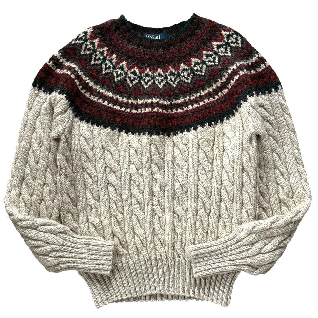 - 90s Polo by Ralph Lauren ポロ バイ ラルフローレン シルク混合 ウール ハンドニット HAND KNIT ノルディック柄 ケーブル編み Lサイズ
