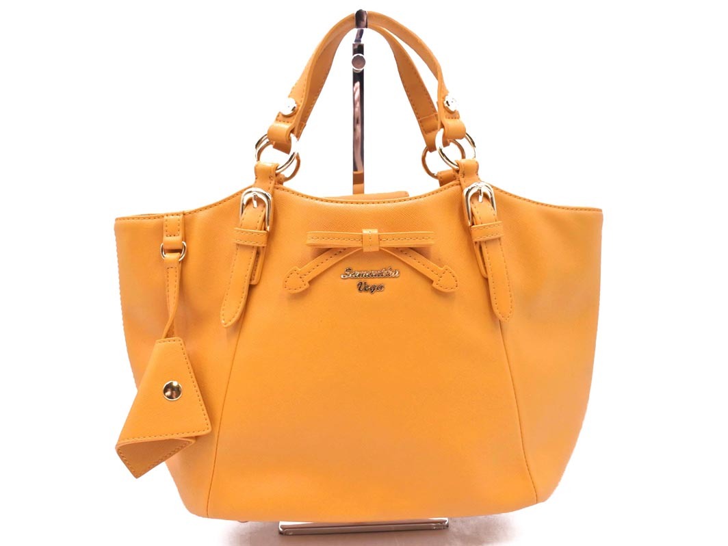 - Samantha Vega サマンサベガ レザー リボン ハンド バッグ 黄 ■■ ☆ fic2 レディース