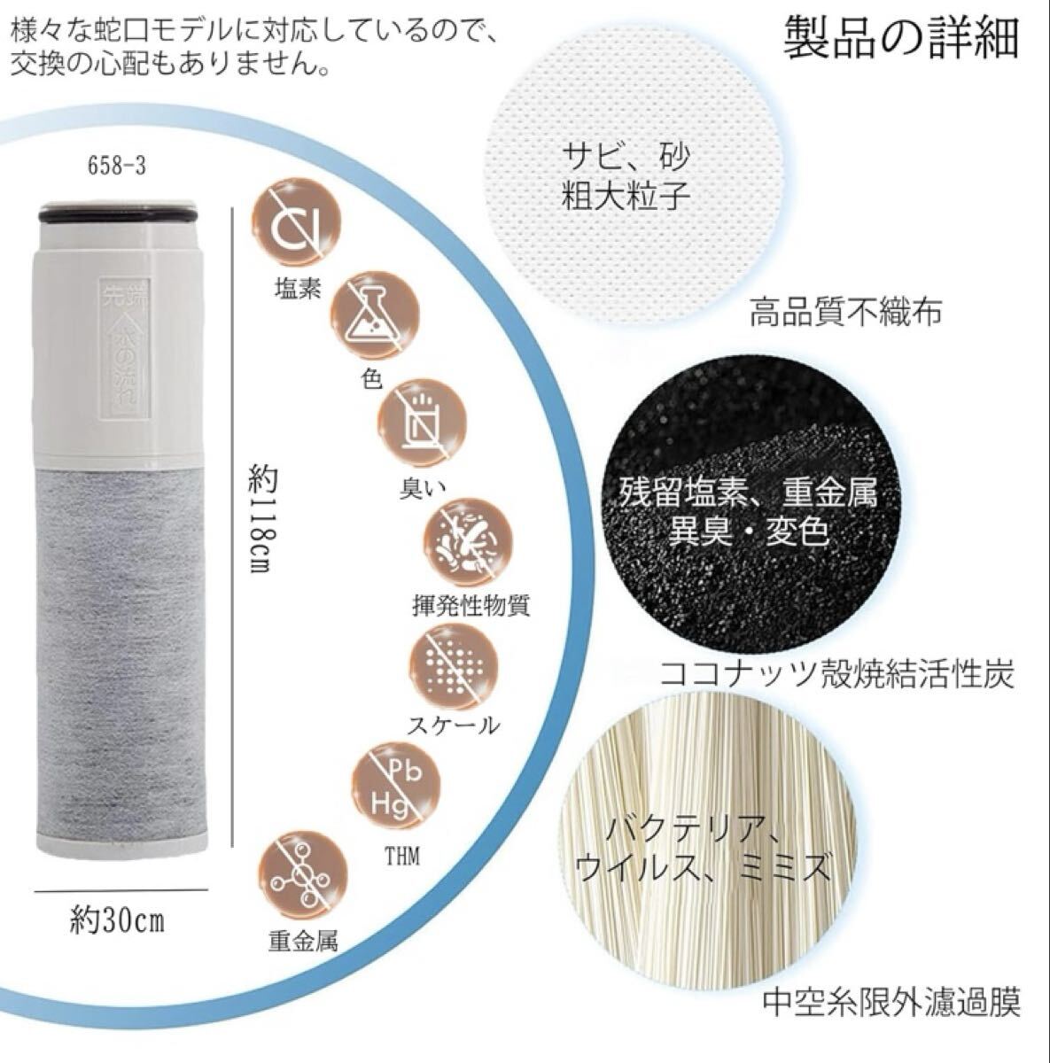 - 【3本セット】浄水器カートリッジ TH658-3、TH658-2、TH658S、TH658-1S、TH658R、TH658-1R、TH658、TH658-1対応 防菌 ろ過 G27338-2