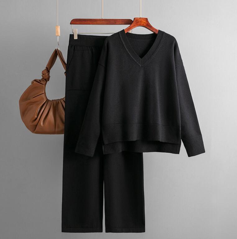 - 343 パンツスーツladiesレディース ◇ ニット素材 カジュアル 上質 防寒 ブラック