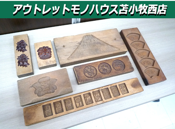 レトロ 木製和菓子型 木型 木製型 菓子型 押型 色々な柄 草花等 7点セット アンティーク オブジェ コレクション 中古 苫小牧西店