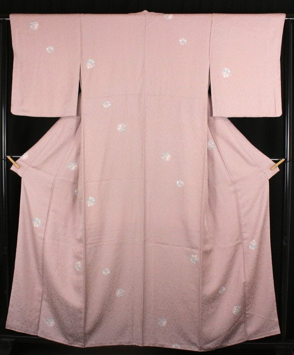 > *未着用*丹後ちりめん【加賀紋友禅小紋】花の丸文 お茶のお稽古にも《スーパー鈴ガード加工》 裄:62.5cm e-2485