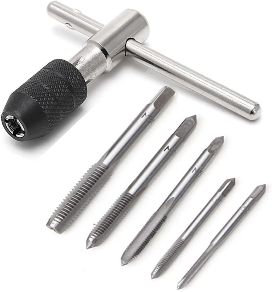 - ネジ ねじきりタップ ドリルタップセット M3 M4 M5 M6 M8 タップドリル T型 ハンドル 調整可能 穴あけ ハンドタッピング作業用 6本セット