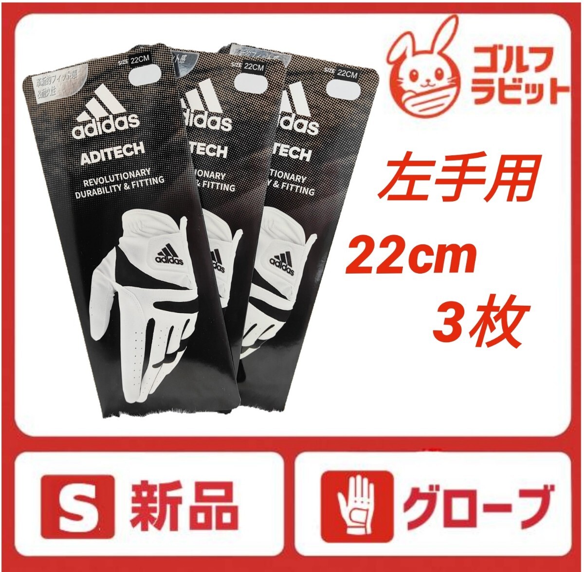 - 【新品】アディダス adidas ゴルフグローブ 左手用 22cm 3枚 メンズ