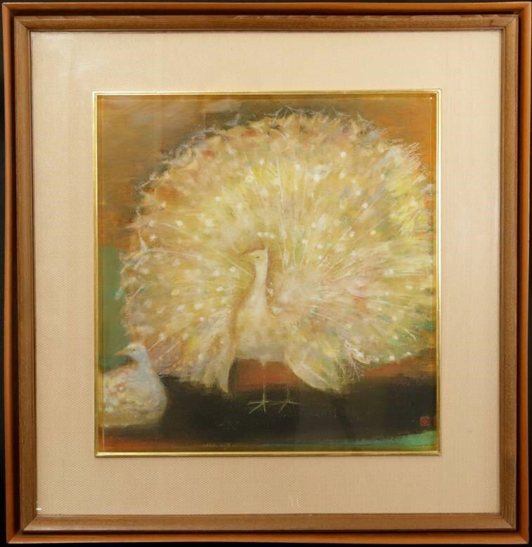 > 【真作】浜田台児 孔雀 共シール 日本画 日展理事長 鳥取 濱田台児/ 掛軸 伊藤深水 鏑木清方 鳥取民藝 杉山寧 大橋翠石 薔薇 舞妓 橋本明治
