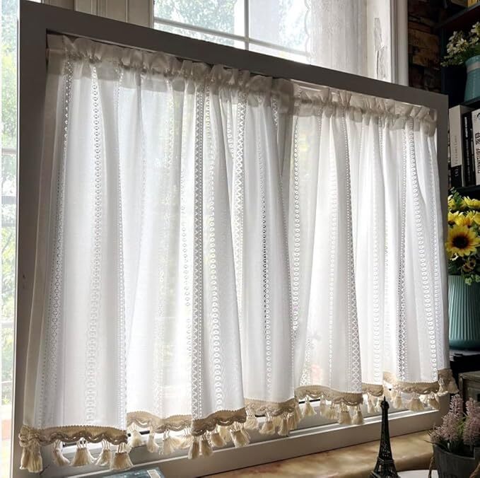- 【1枚入り】【横幅100cm×丈50cm】裾飾り レース カフェカーテン 生成り 小窓 間仕切り 目隠し
