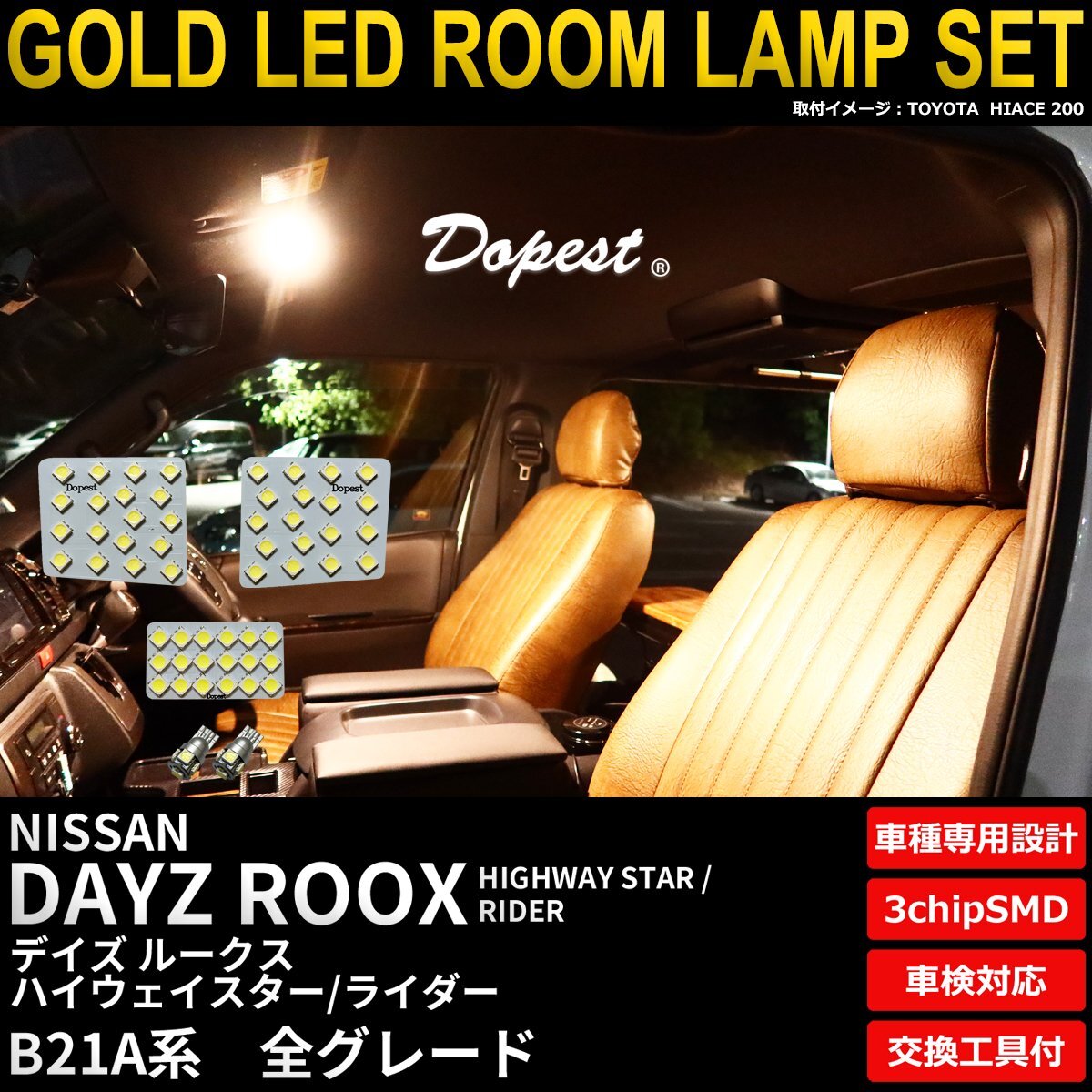 > Dopest 日産 デイズルークス LEDルームランプセット B21A系 電球色 DAYZ ROOX HIGHWAY STAR RIDER ライト 球 室内灯