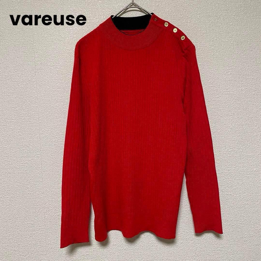 - iq3 vareuse/長袖ニット/肩釦ハイネックプルオーバー/赤/オシャレ