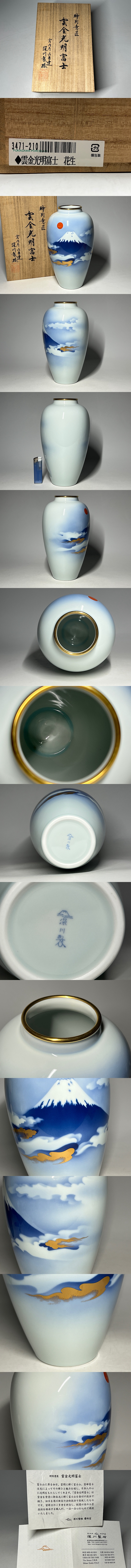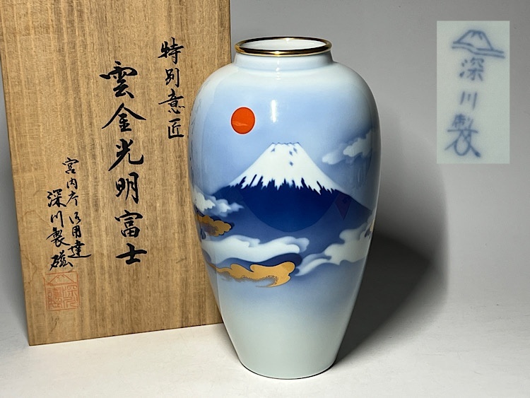 - 【瑞】 深川製磁 雲金光明富士 花瓶 共箱 栞