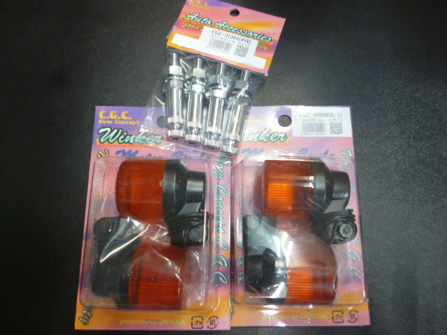 - 本物 CGC ヨーロピアン ウインカー 500型 黒/アンバー 1台分 ウインカーボルトM10x46 セット ロングステー 正規品