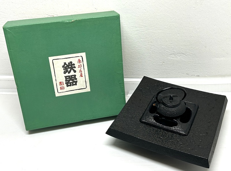 - 微美品/未使用? 盛栄堂 南部鉄器 いろり灰皿セット ミニ鉄瓶/灰皿 栞/共箱 ミニ囲炉裏/ミニチュア置物/鋳物/和雑貨/伝統工芸品/年代時代物