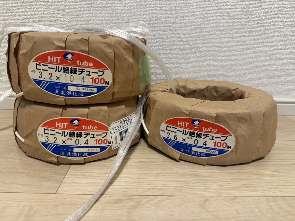 - ビニール絶縁チューブ マークチューブ マーカーチューブ 北港化成 3.2×0.4 100m×2巻 3.6×0.4 100m×1巻