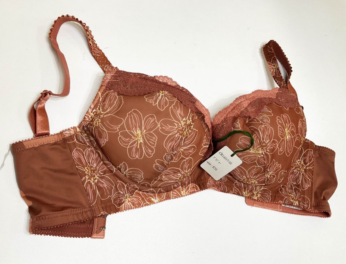 - CR14317-55 IB⑥【特価】新品 大きい ブラジャーセット E70 2色2枚組 ブラウン レース 花柄 リボン 脇高 刺しゅう チャーム レディース