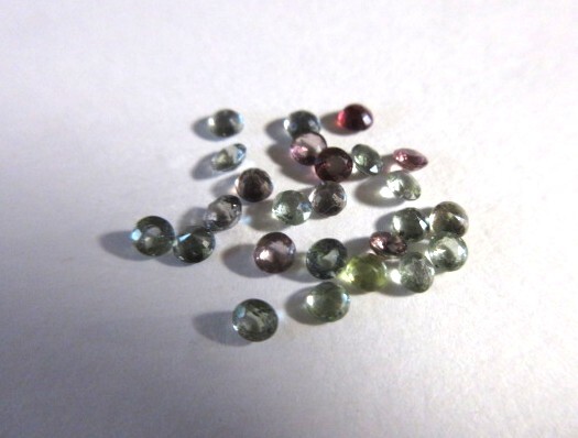 淡いグリーンや水色、イエロー、レッドなどのサファイア・メレルースです。透明感とテリがあります。非加熱。
