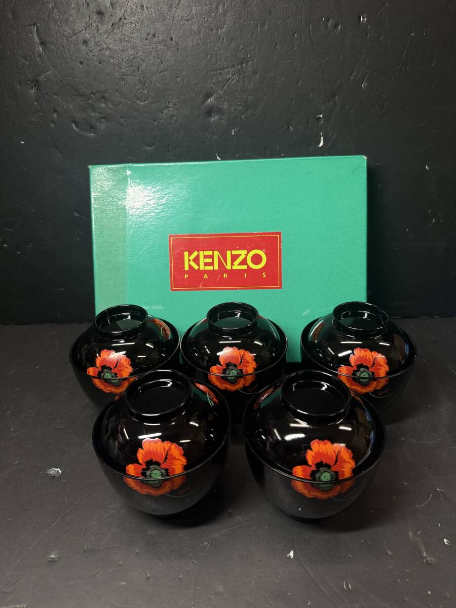 > ★コレクター必見 未使用品 KENZO ケンゾー 麗姫吸物揃 五客 汁椀 漆器 漆塗 漆芸 共箱 和食器 コレクション GT411