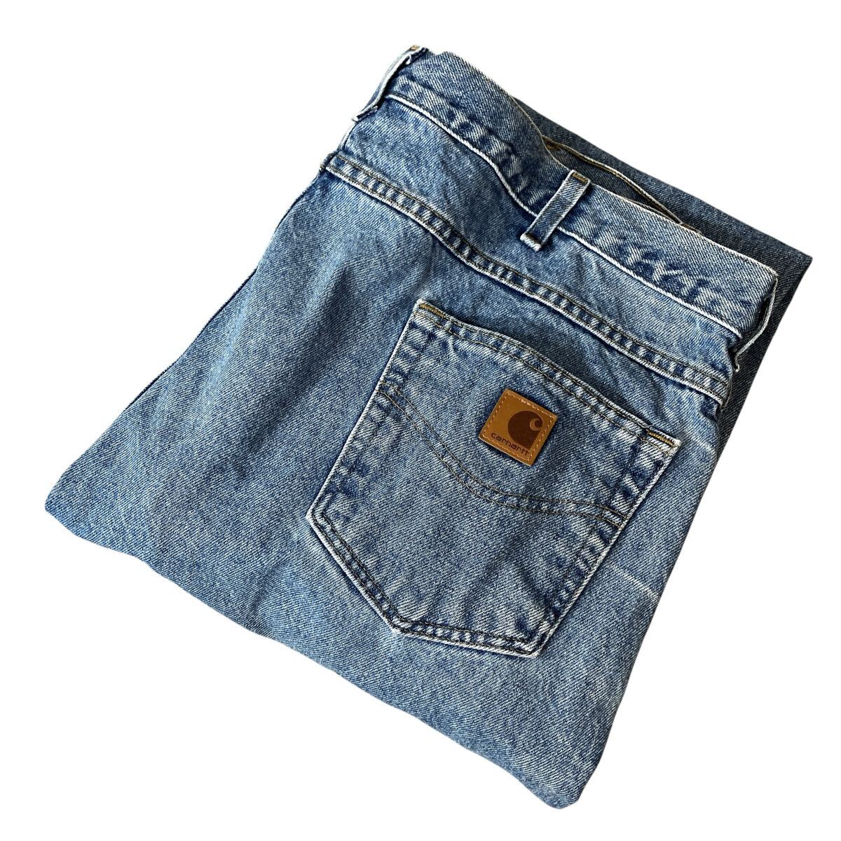 - carhartt カーハート 00s バギーデニム ジーンズ バギー ジーパン パンツ 色褪せ フェード インディゴブルー 極太 W42 L34 革パッチ