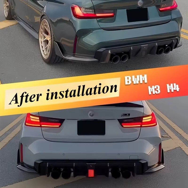 - 【送料無料】 リアバンパー ディフューザー ブラック LED BMW M3 M4 G80 G82 G83 リア スポイラー カナード ブレード